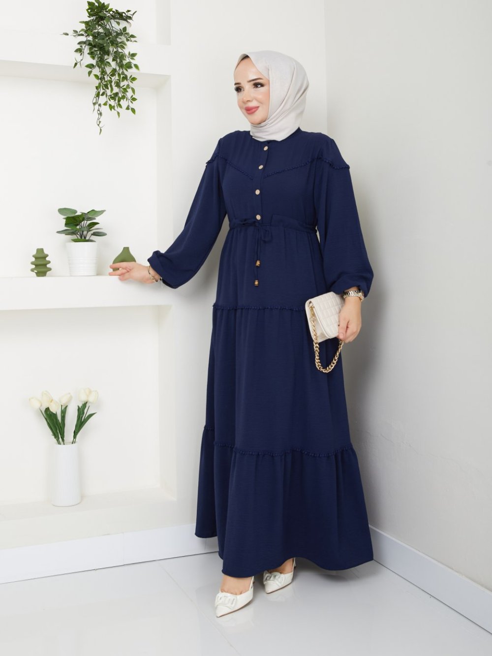 Dantelli Ayşe Ayrobin Elbise Lacivert