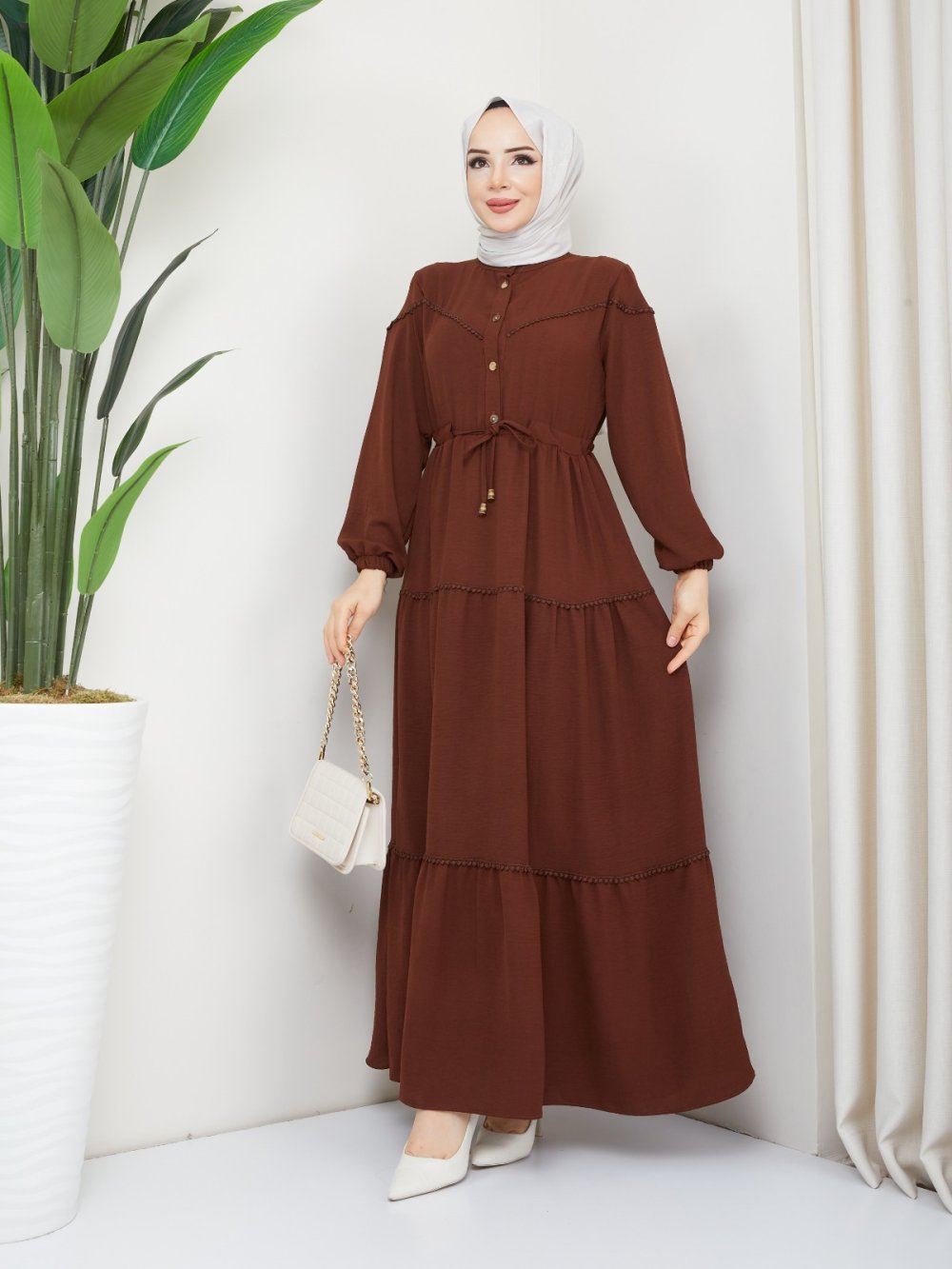 Dantelli Ayşe Elbise Ayrobin Acı Kahve