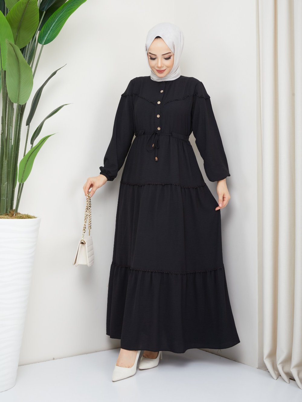 DANTELLİ AYŞE ELBİSEMİZ SİZLERLE ? kod:131 ? 1.sınıf ithal AYROBİN kumaştır Terletmez yazlık Yarim dugmeli belden bağlamalı ipli ayarlanabilir Beden:38-40-42-44-46-48 Kumaş:Ayrobin kumaş boy:138-140 cm