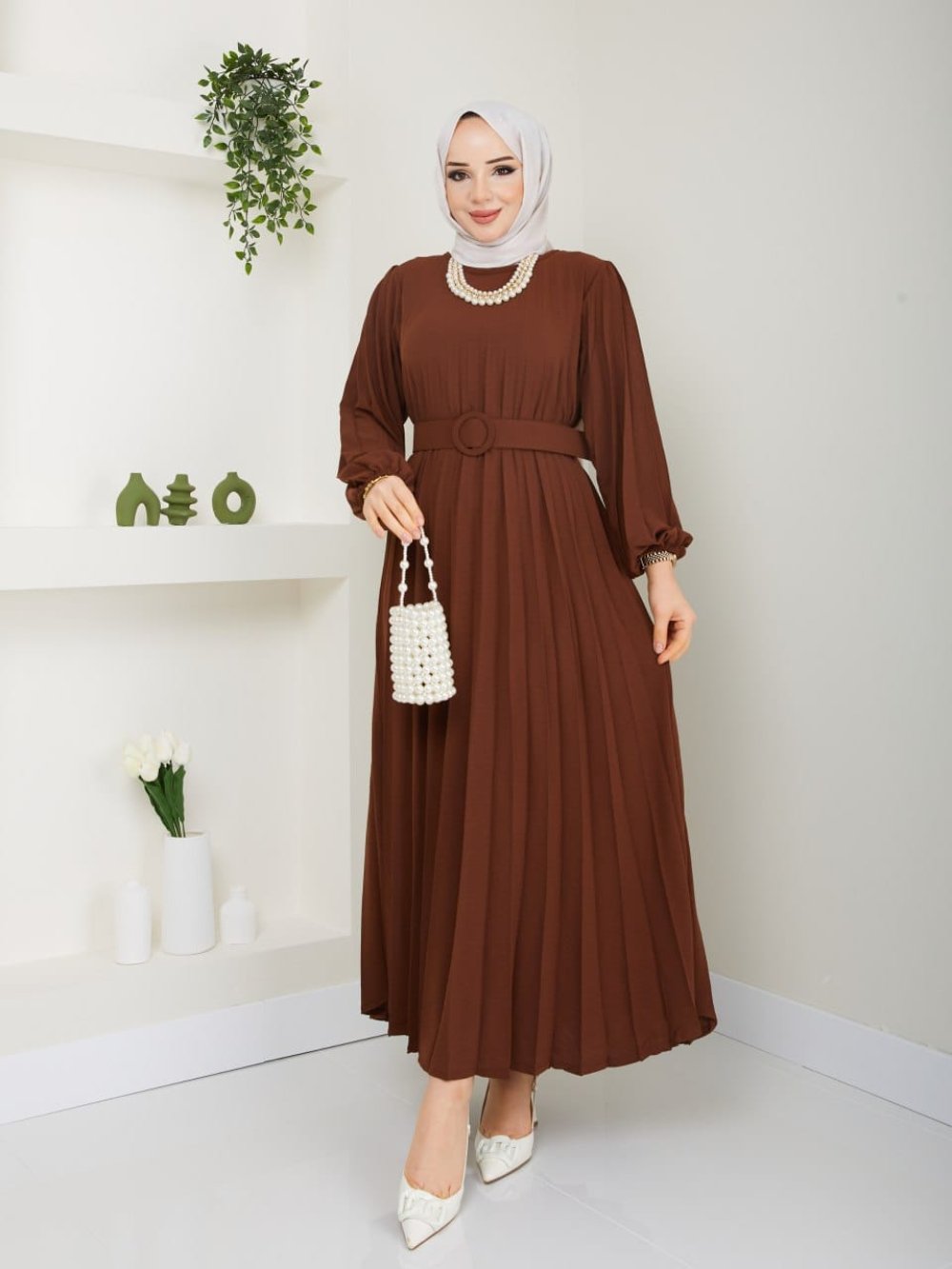 Dilan Ayrobin Elbise Piliseli Kahverengi