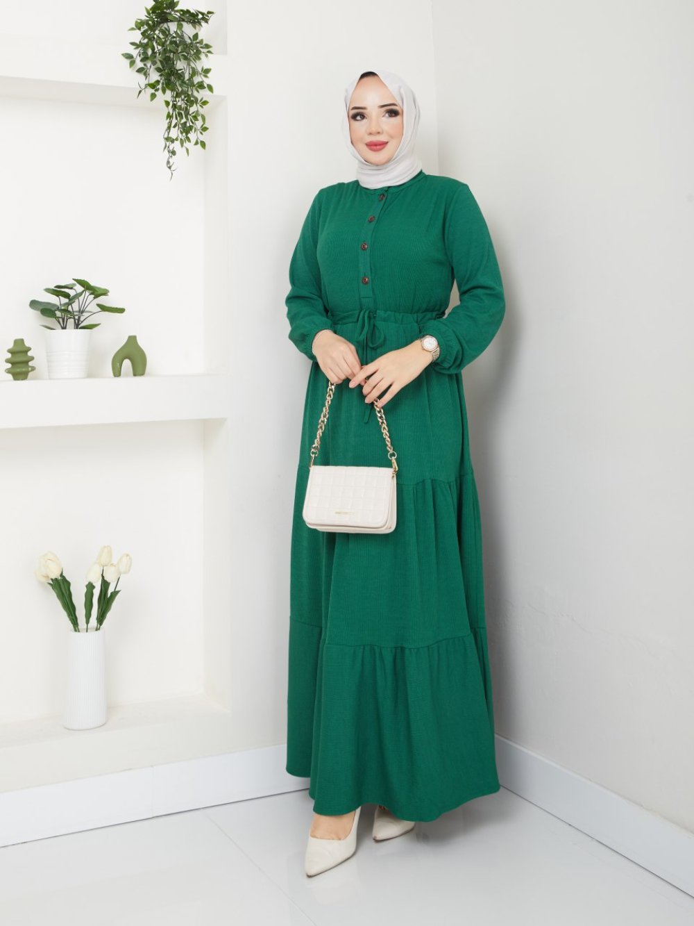 DÜĞMELİ SULTAN ELBİSE Zümrüt