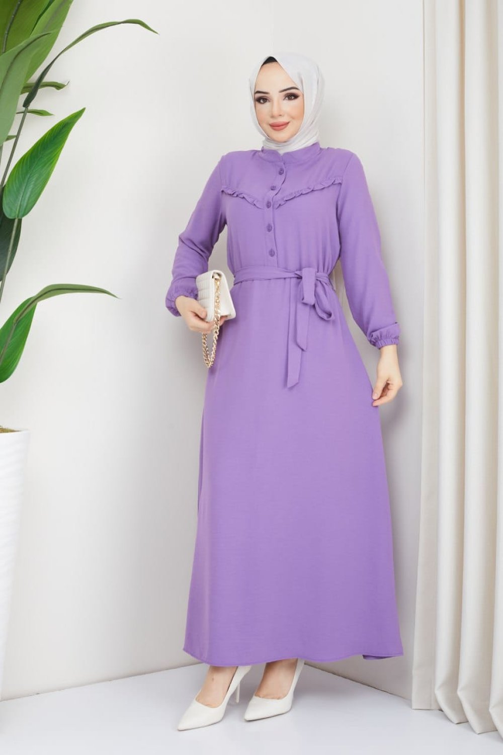fırfırlı Gülistan Elbise Düğmeli Lila
