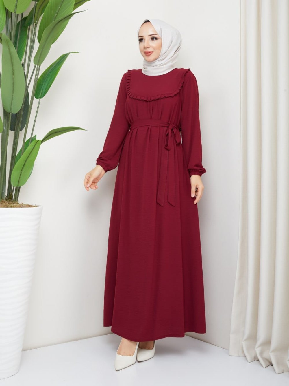 Fırfırlı Hazal Elbise ayrobin Bordo