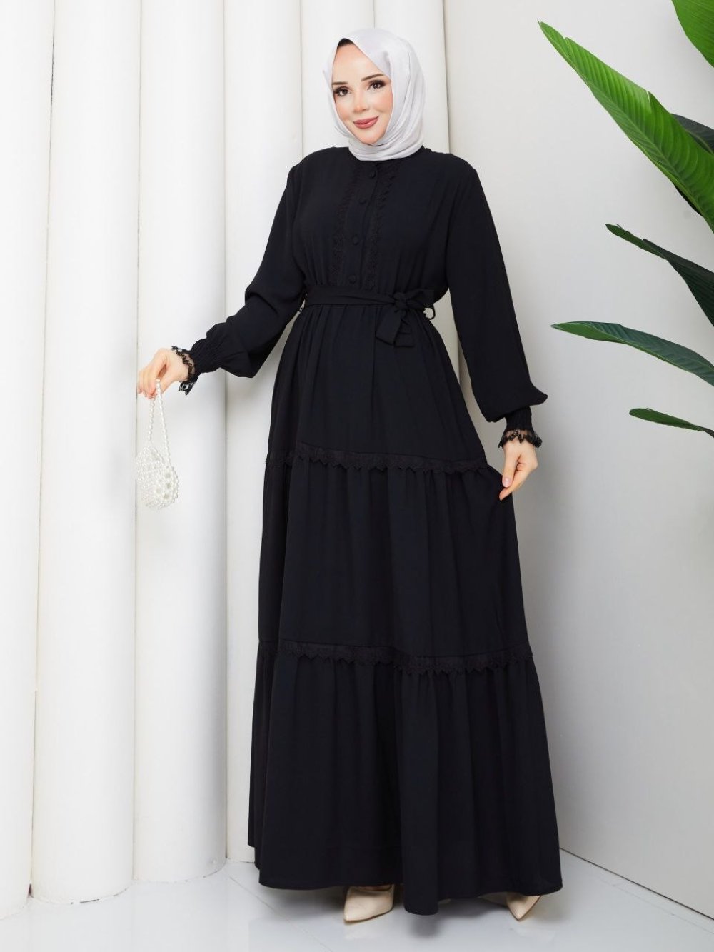 Spor Dantelli inci Elbise Siyah