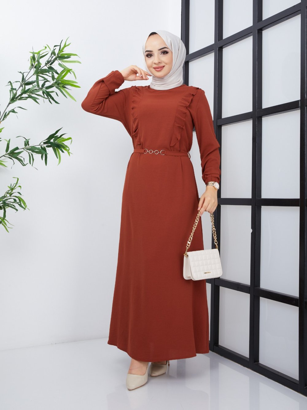 Zincirli Ayrobin Elbise Kiremit